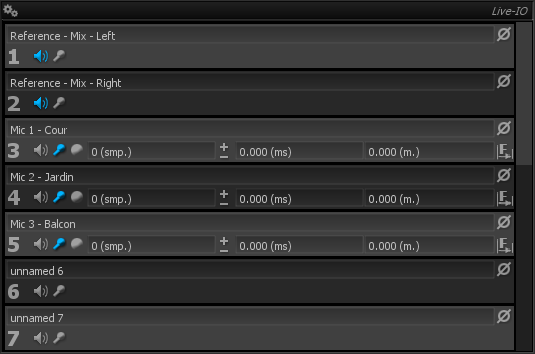 button toggles whether the corresponding channel should be used as a microphone input signal, which is used to capture the response of the system.