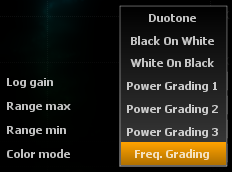 Sets the color to use for minimum and maximum amplitude components respectively, when color mode is set to Duotone.