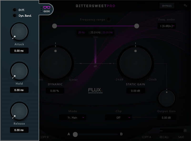 Clicking the Geek glasses opens a window with an additional range of parameters providing extended control of the transient processing envelope.
