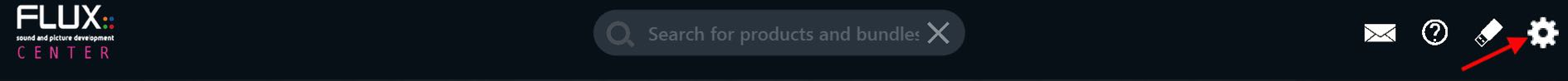 When you open FLUX:: Center you will see a page that lists all FLUX:: products available for you to install. You will also find information about which version you have currently installed on your system and which new versions might be available for you to update to. You can select versions to install - or uninstall if necessary - using the pull down menus. If you would like to access more installer options such as your preferred plug-in format, please click on the gear icon to the top right of the header area.