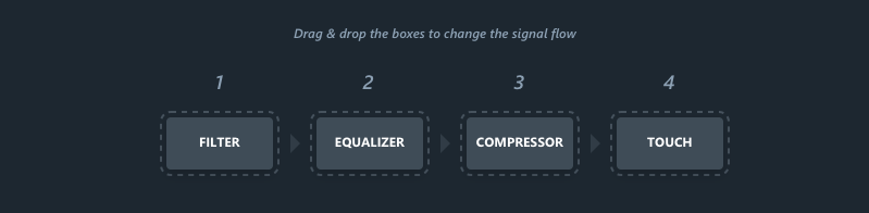 Flow allow you to change the order of the modules in EVO Channel. Simply drag and drop a module to set your perfect signal flow.