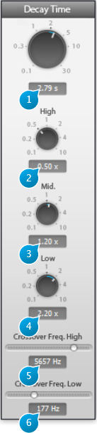 Adjusts relative decay time of medium frequencies specifically. Default setting is 1.