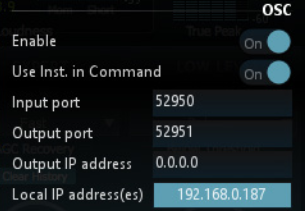 - OSC Enable: When turned on this parameter creates a thread for receiving and sending OSC messages. This thread is multi-instances. This means that this will control all the instances of the plug-in. For example, if you have four LevelMagic(TM) opened, all the communication and control via OSC will be done via this one configured thread. You just have to be sure that the following parameters are well configured.