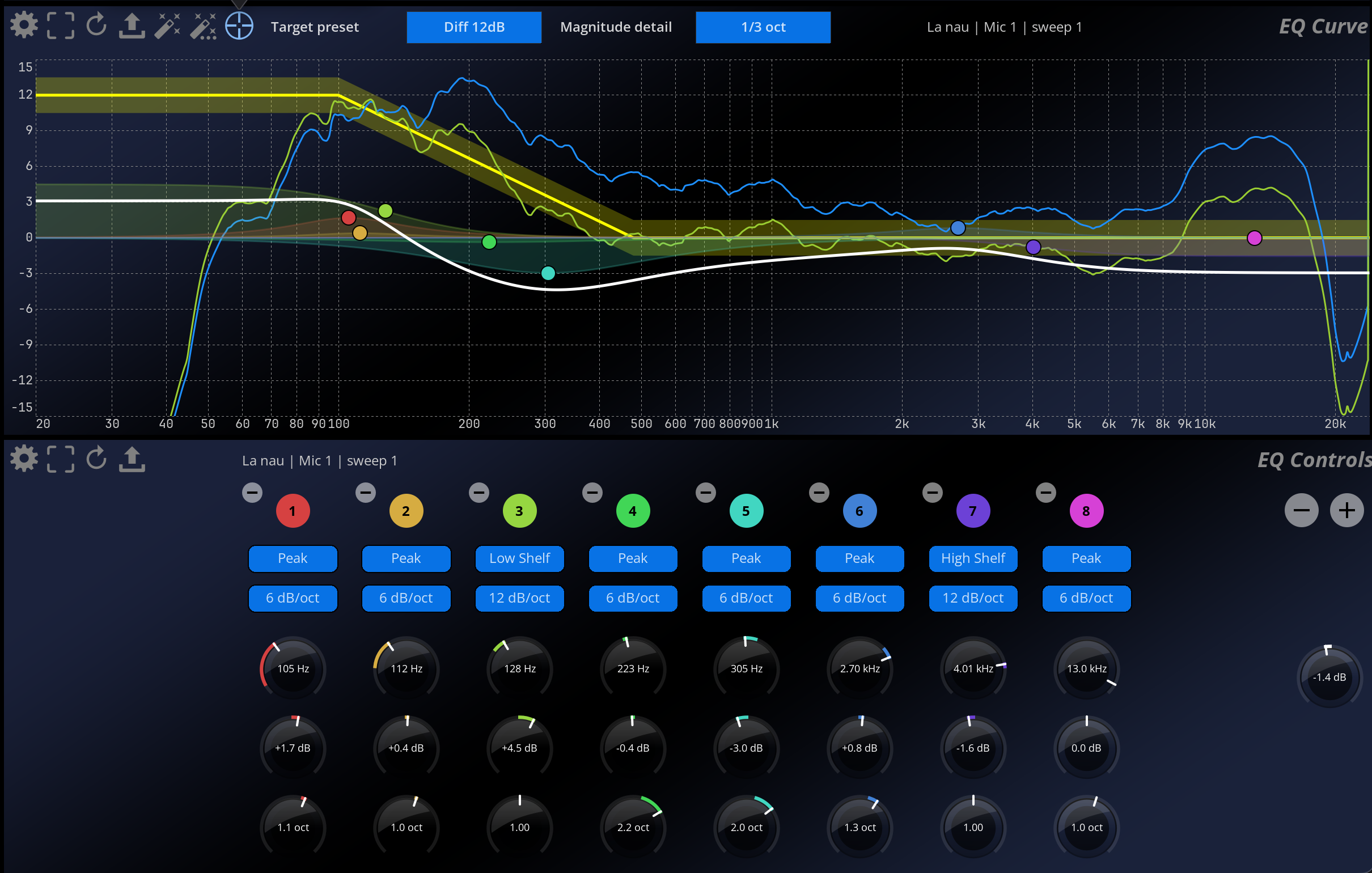 - Optimal parameters for each filter (frequency, gain, Q / octave)