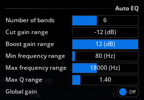 - Configure the Auto-EQ options according to your needs: maximum number of bands and frequency range.