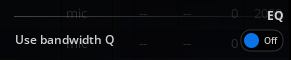 | Q / Bandwidth / Resonance | Depends on unit | Filter selectivity. The parameter differs according to the filter topology. You can switch the bandwidth display unit between Octaves and Q factor in the EQ scope settings. |