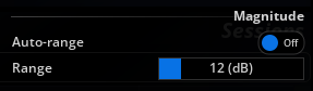 | Auto mode | Toggles auto-range on and off. When enabled, the display range automatically follows that of the transfer function magnitude curves, which is useful for hands-free operation, for example. Default is off. |