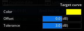 | Offset | Gain offset of the target curve. Range: -12 dB to +12 dB. Default: 0 dB. Use to adjust the overall level of the target. |