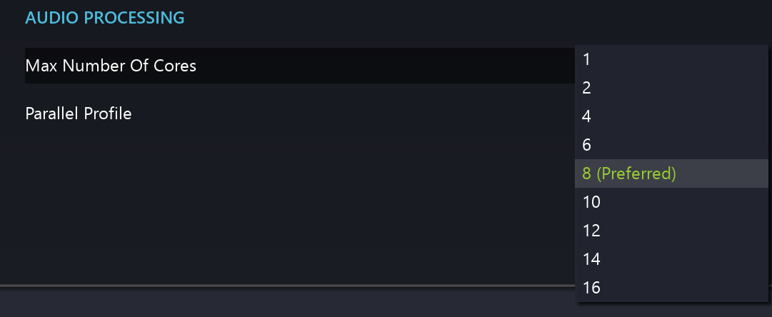 Max Number of Core is your ability to make more or fewer cores available to the SPAT Revolution algorithm. By default, it will be at your number of native core. Not hyper-threading. This can be increased or reduced. Watch not to take all cores for a multitasking computer.