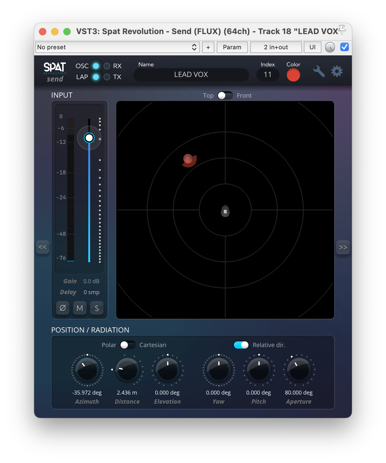 You must then set up an OSC connection to connect with SPAT plug-ins via OSC. In one of the SPAT Revolution OSC connections, you can choose an input preset for a SPAT plug-in and do the same for the output preset configuration.