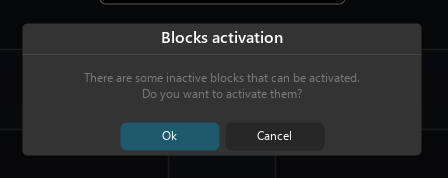 If a session contains inactive blocks that could be activated, a dialog offers to activate them:
