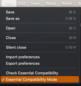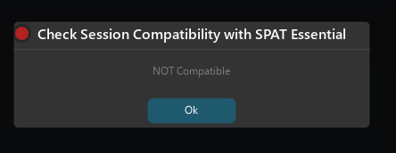 In the Menu File, click on the Check Essential Compatibility item to check if the current session is compatible with the Essential version restrictions. A dialog then informs of the compatibility.