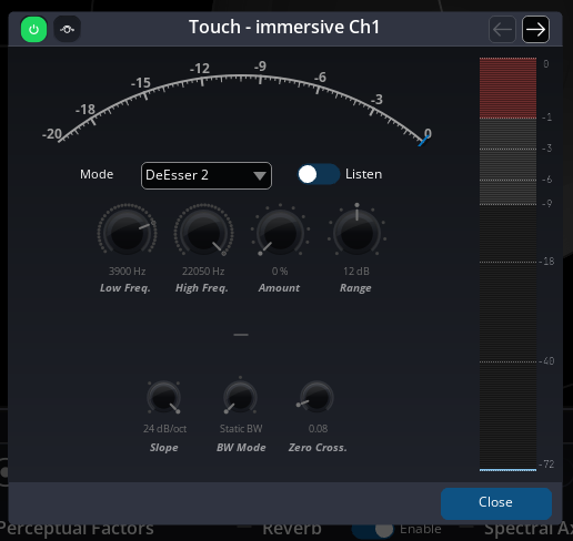 Like the Compressor, Touch displays a gain reduction meter so you can monitor the processing in real time.