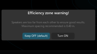 Enabling this option may trigger an Efficiency zone warning if the system does not respect the 0.4-meter spacing between speaker source elements recommendation.
