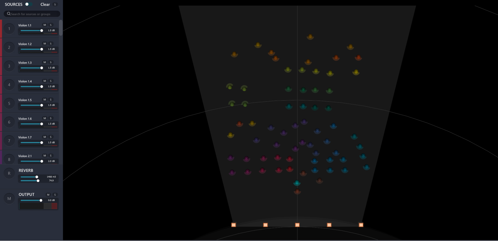 Where traditionally WFS is used on a collinear array of very tightly spaced loudspeakers, SPAT Revolution allows for the use of the spatial audio reproduction technique on systems with greater spacing, in smaller loudspeaker quantity and potentially handling any type of 2D or 3D speaker arrangements.