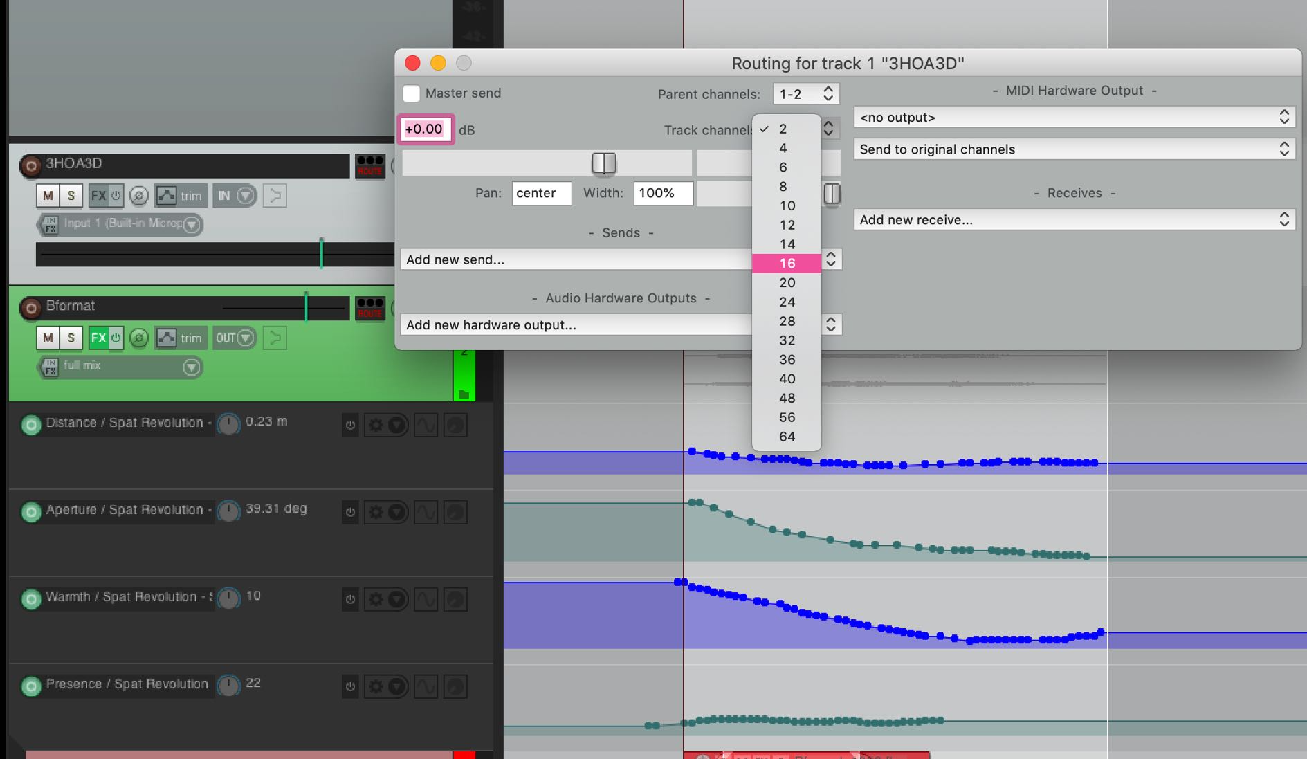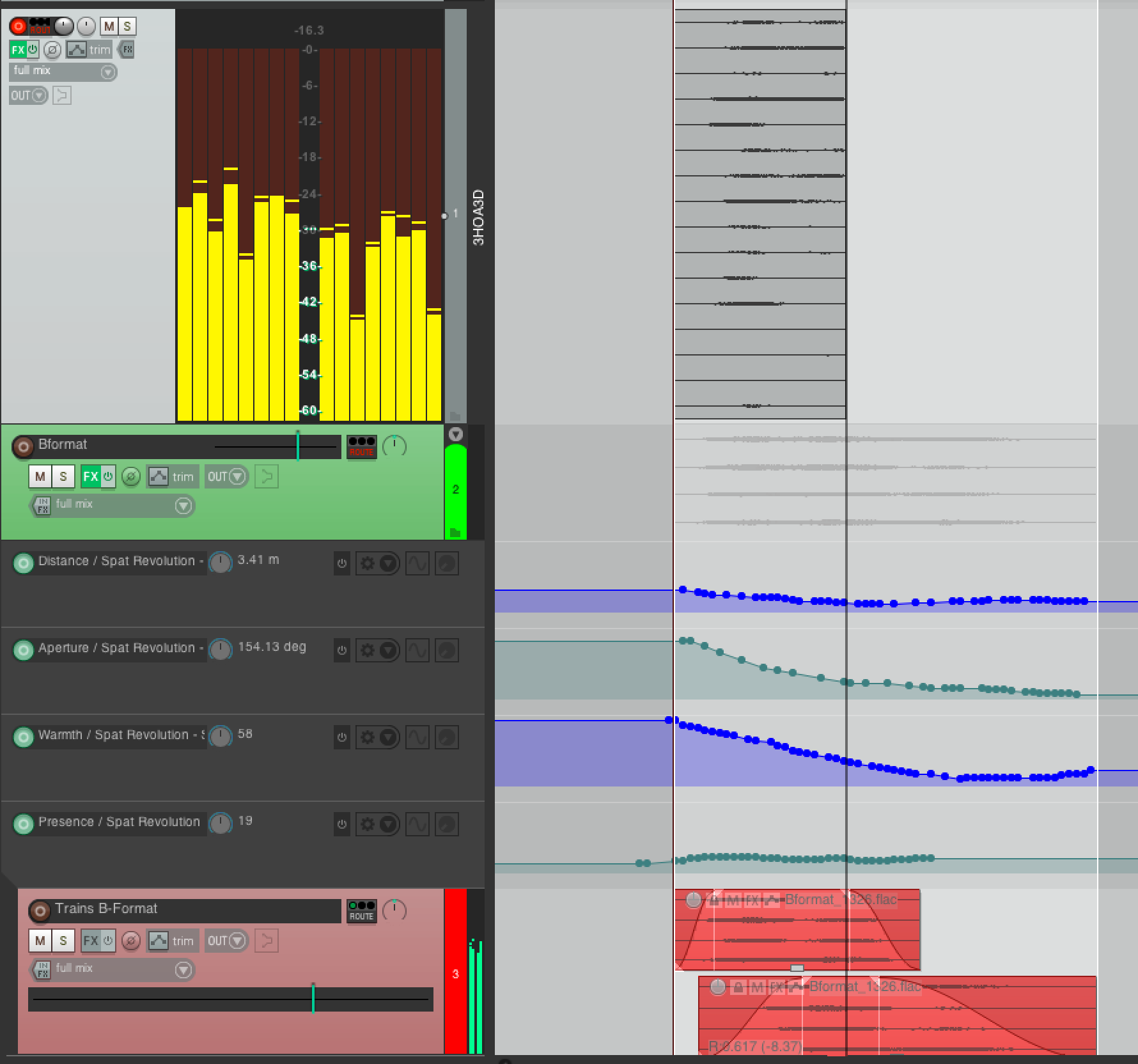 Now different interleaved files in the same format can overlap and be composed on the same Track, and they will be summed to the Folder track, and therefore to the same virtual source/object in SPAT. All automation for that source should happen in the Envelope Lanes of the Parent Folder track.