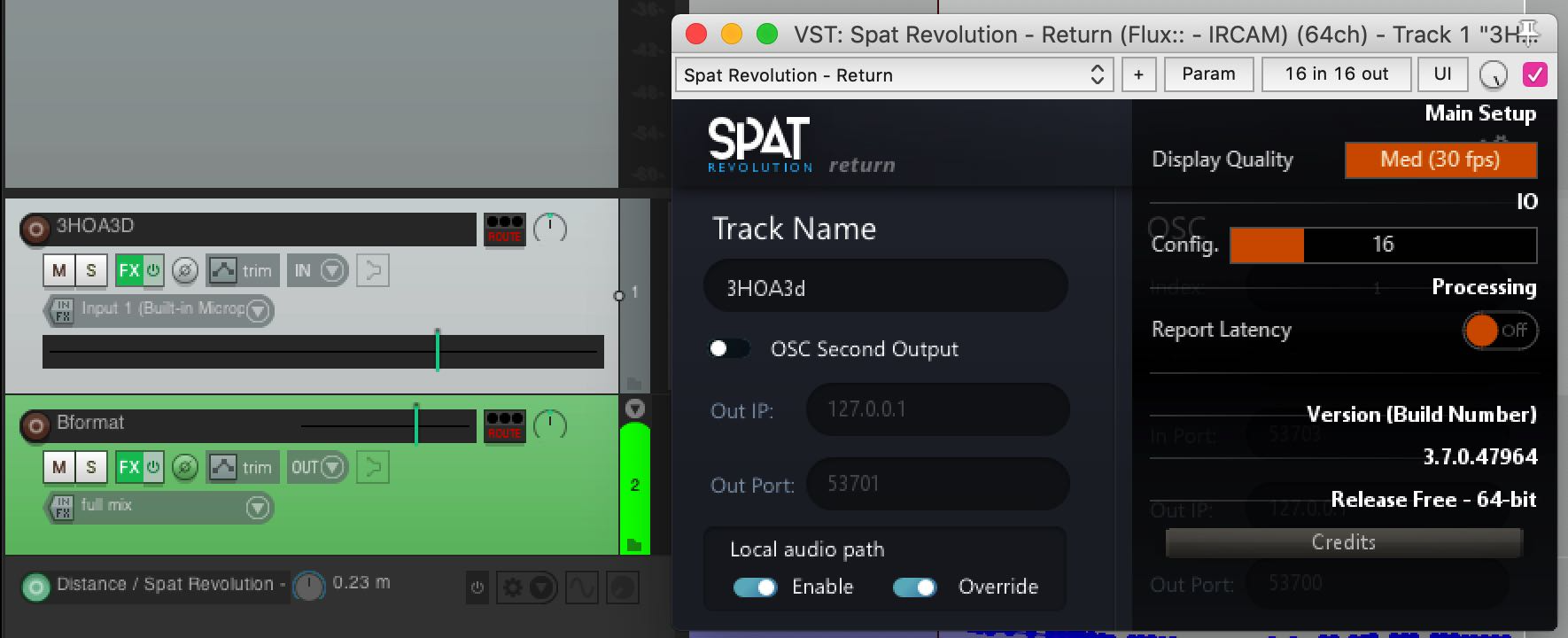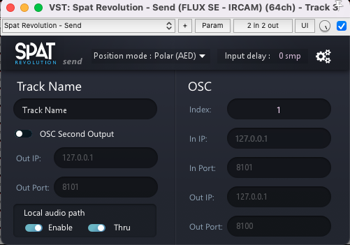 Reaper integrates well with the SPAT plug-ins and the Local Audio Path workflow described in section SPAT PI : Local audio path SPAT PI : Local audio path.