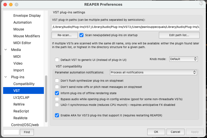 Also, by default, REAPER does not process automation messages when the plug-in GUI is not open. You can change this behaviour globally by going to the Preferences menu, in Plug-ins, VST. In the “Parameter notification automation” line, select “Process all notifications”.
